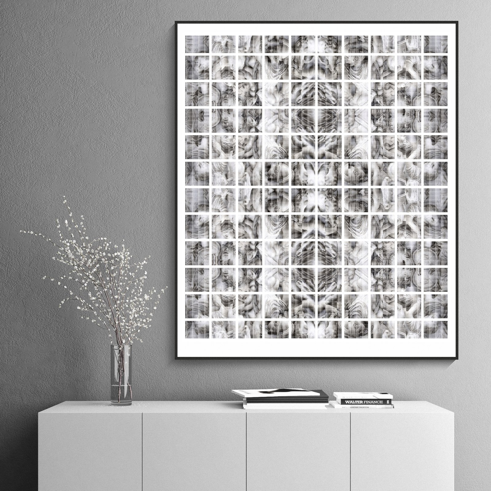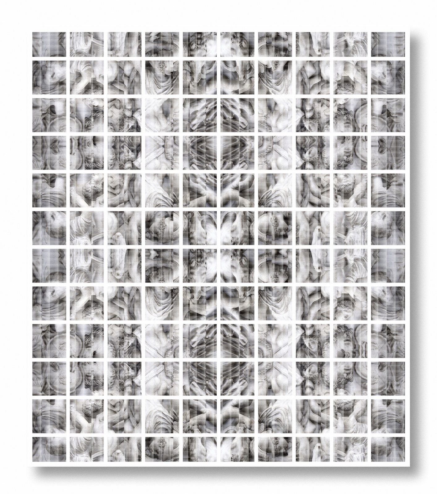 FRAGMENTA DEORUM reexamines classical mythology through a contemporary process of visual decomposition and reassembly. In this series, Alexandru Crișan approaches the divine body not as a fixed icon but as a mutable structure – an image that can be dismantled, reorganized, and reanimated through the logic of the fragment. Trained as an architect, Crișan adopts an analytical method in which sculpture becomes material, symmetry becomes strategy, and the image behaves like a spatial system rather than a narrative scene. Each work operates within a field of controlled instability. Fragments of ancient reliefs, gestures, and anatomical details are multiplied and recomposed into new configurations where recognition and uncertainty coexist. These images provoke pareidolia: faces emerge where none were placed, mythic creatures surface from folds of marble, and bodies appear to oscillate between coherence and dissolution. Meaning does not reside in any single element but in the shifting relations among them. The series engages mythology as a psychological reservoir rather than a storytelling device. Echoes of Greek and Roman deities – Medeia, Hecate, Cassiopeia – are not depicted but inferred, surfacing through repetition, distortion, and dream-like recombination. This oneiric dimension aligns the work with psychoanalytic readings of the image, where memory, desire, and symbolic residue intertwine. The divine re-enters contemporary vision not as a stable figure but as an afterimage: a structure of intimation, erosion, and metamorphosis. FRAGMENTA DEORUM proposes that fragmentation is a generative force. Through decomposition, the sacred is not lost but redistributed; through recomposition, myth becomes newly legible. Each artwork stands as a contemporary relic, a threshold where architecture, mythology, and the unconscious converge. Crișan’s images reveal that the gods persist – not in their intact forms, but in the fragments through which they continue to speak.
